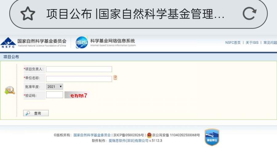 国家自然首页里的登录框上方项目公布界面上已经有2021年查询了已有7人参与