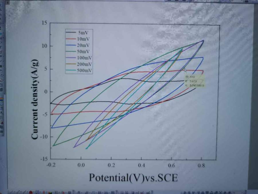 我的实验条件是用1M的盐酸,过硫酸铵做氧化剂,常温搅拌合成聚苯胺。做CV测试时,只有5mv/s和10mv/s能看到氧化还原峰,其他的扫速就看不到了。我想知道为什么 发自小木虫Android客户端 |