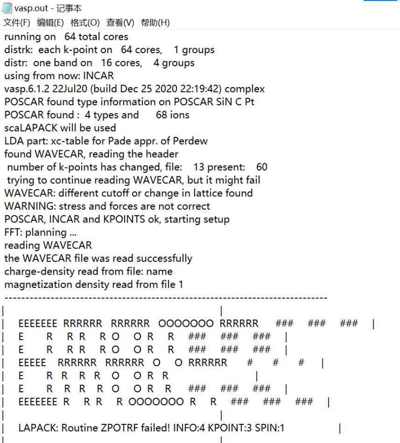 这次能带计算问题,.out文件里出现了如下的错误,恳请各位大神帮我解答。vasp.out和incar文件已贴出 发自小木虫Android客户端 |