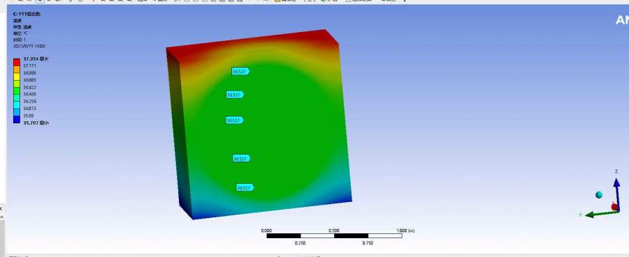 本人刚开始学ansys热力学仿真,遇上了一个问题实在解决不了了,希望大神们帮帮忙! 模型是:一个正方体内部包含一个球体 载荷是:四壁绝热,上表面200W热流,下表面10W/mm2C对流 稳态热结果中内部球体的温度各点都是一样的,这是怎么回事呢?不应该是从上至下温度递减吗?实在想不通出错在一步设置了,大神们帮帮忙呀! |