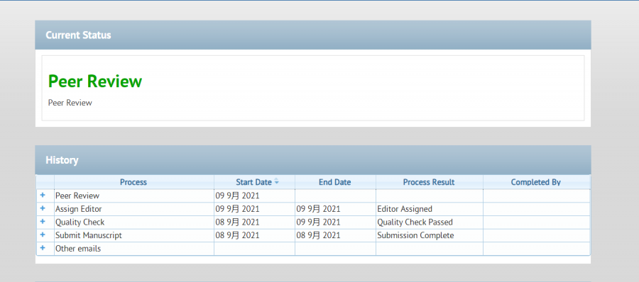 投了一篇OSA的文章,现在到了peer review阶段,可是投稿系统一直没有显示 reviewer 1, reviewer 2……的详细信息。这个状态已经6天了。问一下有没有知道这个状态表示稿件现在在哪儿:在编辑手里,还是已经在审稿人手里了? 审稿人状态.png |