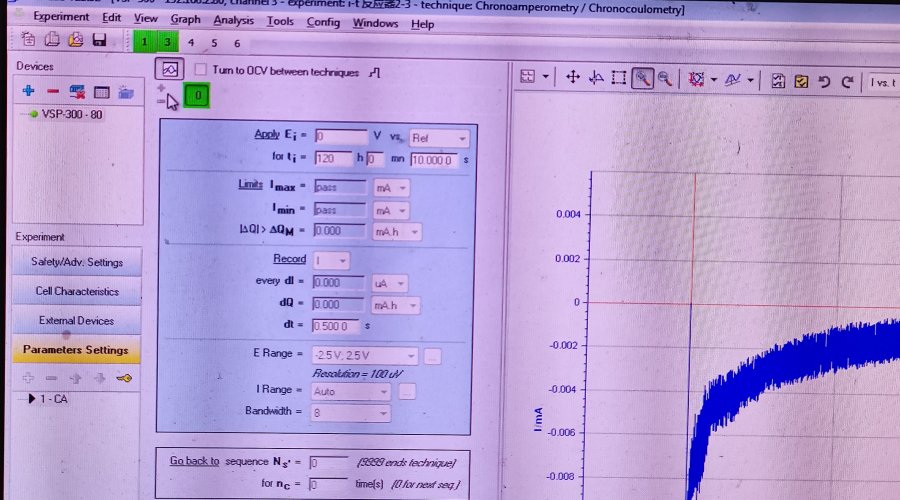 EC-Lab和CHI1000在进行时间电流测定时,参数这样设置是否是一个效果 已有1人参与