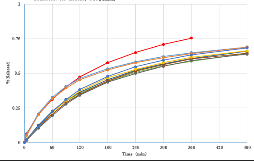 如图,红色是原研,中间两条是刚制备出来的样品溶出情况。下面的曲线是加速1M和6M的溶出情况(40℃,75%RH)。通过测定粒径发现加速实验后的样品粒径未变化,但溶出变慢了,请教1、可能的原因是什么? 2、加速后的曲线开始时溶出变慢,最后的点能与刚制备样品的点接近,这合理么?谢谢