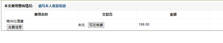 ![]() ![]() 2021年9月1号投稿,当天收稿进行初审;审稿人 梅志强2021年9.27号收到邮件,通知缴纳199的审稿费,通过邮件里面的链接填写发票信息,通过我的个人支付宝付款,付款后电子学报官网的状态依旧显示在初审,未缴纳审稿费,一直在持续到现在,继续等待中。。。。。。 ![]() 未命名图片.png |
