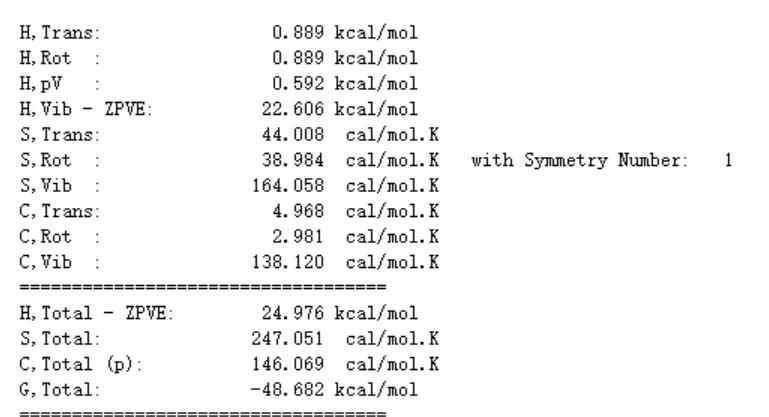 用MS找过度态的方法计算反应速率常数 里面有个ΔS 应该是过度态和反应物之间的熵变,对应的这个TS输出结果里面哪两个数之差呢?