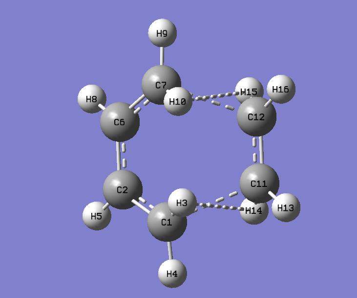 QST2方法寻找Diels-Alder反应的过渡态,最终找到的过渡态氢原子(H10和H15之间、H3和H14之间)为什么会有连接的键。这个过渡态正确么? 文件网盘链接 链接:https://pan.baidu.com/s/1fRlUyB752Vax5NmIeEkCJA 提取码:67mv %chk=C:\Users\LiangXiao\Desktop\new\2222222.chk # opt=(calcfc,qst2,noeigentest) freq hf/3-21g geom=connectivity Title Card Required 0 1 C 0.03565163 0.67716613 0.01763176 C 0.94951560 0.83154754 -0.97109776 H -0.04163750 1.40956788 0.79384956 H -0.60860144 -0.17712790 0.02206696 H 1.02680531 0.09914537 -1.74731510 C 1.87675790 2.06109257 -0.97748150 C 1.77886713 2.98871080 0.00563032 H 2.59830034 2.18298468 -1.75813431 H 2.42311909 3.84300567 0.00119422 H 1.05732520 2.86681830 0.78628355 C 1.33293327 0.73203691 3.06443528 C 2.07275142 1.86580864 3.12606164 H 0.54167951 0.57070881 3.76642583 H 1.54006251 -0.00180594 2.31378746 H 2.86400463 2.02713712 2.42407056 H 1.86562254 2.59965123 3.87670981 1 2 2.0 3 1.0 4 1.0 2 5 1.0 6 1.0 3 4 5 6 7 2.0 8 1.0 7 9 1.0 10 1.0 8 9 10 11 12 2.0 13 1.0 14 1.0 12 15 1.0 16 1.0 13 14 15 16 2222222 0 1 C 0.99229311 0.98373818 -0.11319485 C 1.96103430 1.21711623 -1.27223685 H 0.28947234 1.78624191 -0.19644583 H 0.48504594 0.04366850 -0.17539852 H 1.96599255 0.60254924 -2.14812659 C 2.76878730 2.31669568 -1.14531095 C 2.85061765 3.03964102 0.23118563 H 3.32691822 2.67930384 -1.98310878 H 3.73671879 3.63789092 0.27386850 H 2.00312236 3.66845637 0.40794251 C 1.69178469 1.03956602 1.26884445 C 2.95821884 1.91526241 1.23353118 H 0.95005115 1.40599190 1.94741902 H 2.03685797 0.07798898 1.58695453 H 3.77716926 1.32184382 0.88413945 H 3.15678133 2.26453443 2.22523779 1 2 1.0 3 1.0 4 1.0 11 1.0 2 5 1.0 6 2.0 3 4 5 6 7 1.0 8 1.0 7 9 1.0 10 1.0 12 1.0 8 9 10 11 12 1.0 13 1.0 14 1.0 12 15 1.0 16 1.0 13 14 15 16 微信截图_20211028111332.jpg |