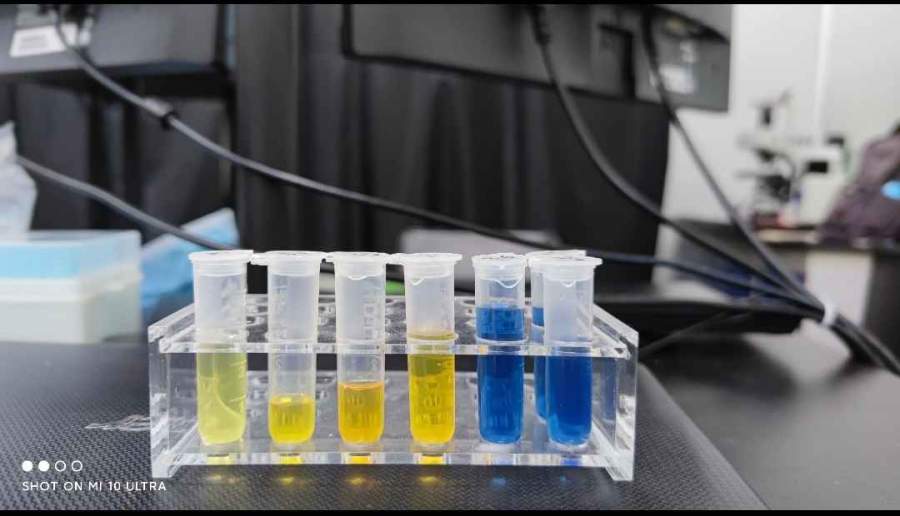 我参考的是殷亚东老师jacs的那篇经典文章,用(硝酸银,柠檬酸钠,双氧水,硼氢化钠)直接还原法。 每步的反应该出现的颜色都有。算是比较粗糙的成功了。但是这个方法合成的原液太稀了,我用12000转/s离心,再分散到较少的去离子水中,得到了较浓的溶液,然后测谱,和看电镜。 可是每次我加到比色皿中,还是蓝色的,在测谱过程中就会慢慢变成黄色,在吸收谱上等离激元峰也慢慢消失。我想知道发生了什么,我该怎么做,谢谢大家。 发自小木虫Android客户端 |