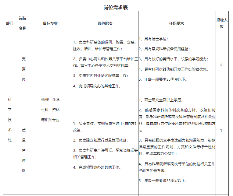 中国科学院赣江创新研究院(以下简称“赣江创新院”)是由中国科学院与江西省人民政府共建的中国科学院直属科研机构,位于江西省赣州市。根据中国科学院“三个面向”“四个率先”的办院方针,围绕关键金属资源领域国家产业发展重大需求,开展基础性、战略性、前瞻性研究,构建全链条创新体系,建成集创新研究、人才培养、重大应用为一体的新型研发机构,实现关键金属资源产业绿色发展和高端应用方面的提升跨越,发挥国立科研机构的骨干与引领作用。 网址:https://www.gia.cas.cn/zpxx/202109/t20210916_6203616.html 根据赣江创新院发展需要,现面向社会诚招以下支撑、管理类人才: 一、基本条件 1、热爱祖国,遵纪守法,品行端正,爱岗敬业; 2、具有较强的服务意识、团队合作精神和组织协调能力; 3、具备适应岗位需要的身体条件; 4、具备承受工作压力的心理素质; 5、具备招聘岗位所要求的其他条件。 二、招聘岗位 招聘岗位详细信息见附表。 三、薪酬福利 1、提供具有竞争力的薪酬待遇。 2、博士享有安家费60万元(分8年按月平均发放)。 3、提供完善的福利保障。 四、工作地点 江西省赣州市。 五、招聘程序 1、应聘者须提供以下材料:(1)《应聘申请表》(见附件);(2)证明材料:身份证、学历及学位证书、岗位任职证明材料、相关职业资格证书、其它能证明本人适合该岗位的材料等;(3)《应聘人员基本情况信息表》(见附件),上述材料打包,并以“岗位+姓名+学历+毕业学校+专业”命名,发送至报名邮箱; 2、初选合格者将参加面试,面试时间和地点将另行通知; 3、面试通过者参加竞聘答辩,届时请准备PPT竞聘报告。PPT报告内容主要包括:(1)个人基本情况;(2)工作业绩;(3)对应聘岗位理解与认识;(4)未来工作设想; 4、未通过初选者不另行通知,材料恕不退回,将予以严格保密。 自发布招聘启事之日起,凡符合招聘条件的人员均可报名,额满为止。 六、简历投递邮箱 (1)科学技术处:kjc@gia.cas.cn (2)人事教育处:yqhua@gia.cas.cn 1636537229(1).jpg [ 来自版块群 江西 ] |