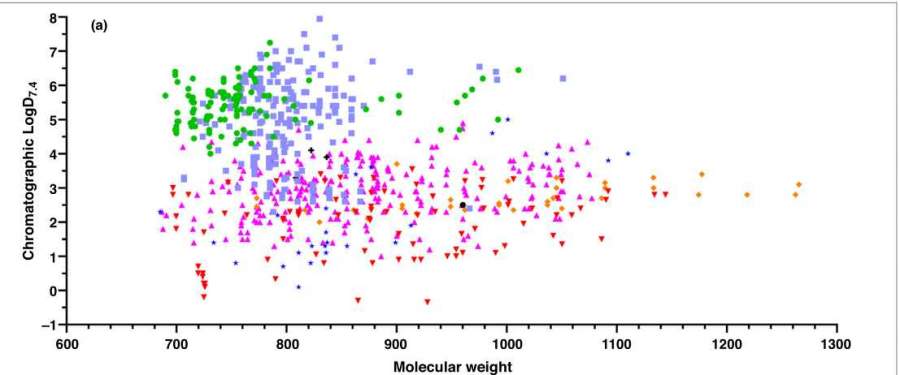 我查了一下,你参考下 LogD7.4<1: 化合物的被动扩散渗透低,溶解度高,但吸收和脑通透性差。 这类化合物由于极性较大,具有很高的肾清除,如果同时分子低,可能会出现细胞旁路渗透。 l<LogD7.4 <3: 这是一个理想的范围。由于溶解和被动扩散渗透间有良好的平衡,这类化合物通常具有良好的小肠吸收。由于代谢酶结合较低,使代谢最少。 3<LogD7.4<5: 由于较差的溶解性,这类化合物渗透性良好,但吸收程度低。在此范围内与代谢酶结合增加,使代谢程度高。 LogD7.4>5: 低溶解度导致这个范围内的化合物吸收和生物利用度都较差。 发自小木虫Android客户端 |