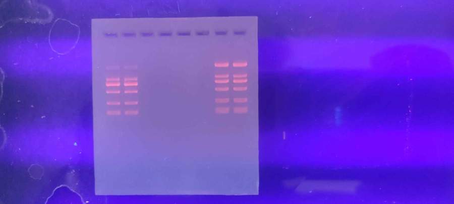 在同一胶块上跑DNA marker条带,左边和右边是不同品牌的,为啥右边品牌条带稍微宽一点,跑的快一点 @biostar2009 @飞约疯人院 @wizardfan @youlinglyw 发自小木虫Android客户端 |