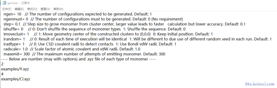 在计算化学公社学习了卢老师的molclus+Gaussian进行初猜和结构优化(https://bbs.keinsci.com/thread-577-1-1.html)、赝势基组的输入(https://sobereva.com/60)教学两个网页后,自己按讲解的每个步骤对Y2Cl4结构优化,到molclus生成isomers文件为空,不知道之前的输入哪里出了问题,此处附上我整个操作流程,希望能够得到有经验老师的帮助,万分感谢。 图1、2.genmer文件夹下example里面写的Y、Cl的xyz文件 图3是genmer记事本的程序书写 图4、5分别是加入赝势基组的template1、2 求助为什么按这些进行molclus操作后isomers文件输出为空白,我这些输入是否哪里有误,如何更改? 202111301537058620..png Y.png genmer.png template1.png 202111301544335381..png@smutao@oxox6085 |