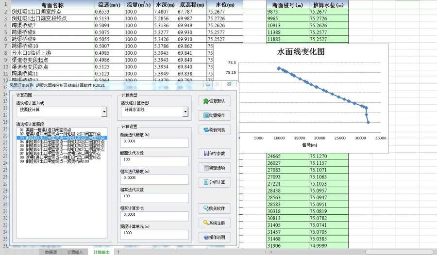 风雨江湖系列之明渠水面线分析及糙率计算软件