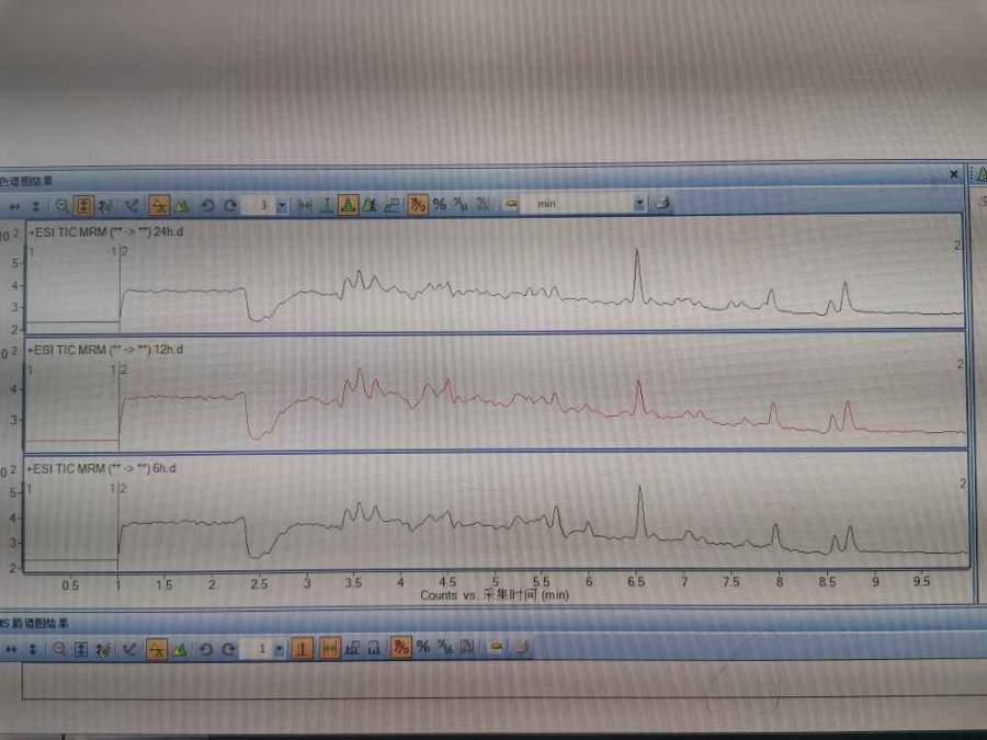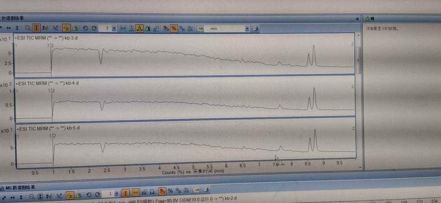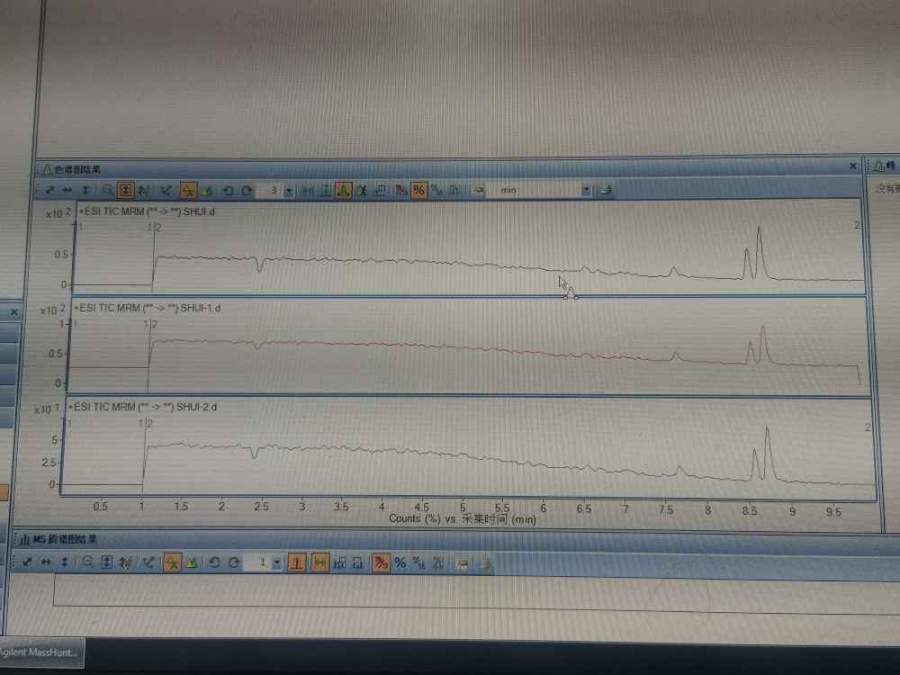 就是我用安捷伦的LC-QQQ-MS检测我的目标成分,假设为化合物1和2。然后跑血浆样品的时候峰面积都差不多,怀疑检测有问题,然后又跑了纯甲醇,蒸馏水和空针,发现还是能出现目标化合物(柱子已冲干净,且进样量从5ul调到了1ul)图1是样品,图2是蒸馏水,图3是纯甲醇。内标出峰时间为8分钟,化合物1和2分别为8.6,8.8分钟。 急急急,各位大佬帮忙分析一下 发自小木虫Android客户端 |