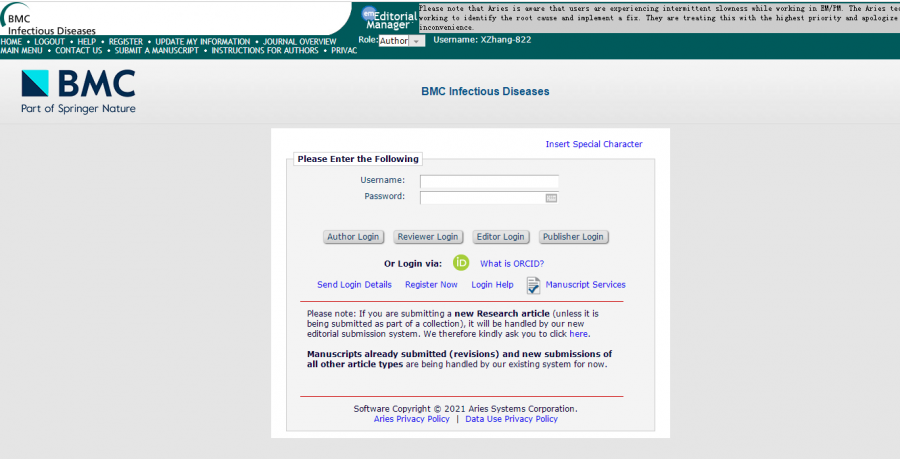 救命!BMC Infectious Diseases投稿怎么有两个网址!哪一个是对的?已经用第二个投了