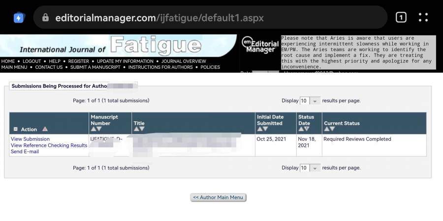 投Int. J. Fatigue,Required Reviews Completed20多天了 已有2人参与