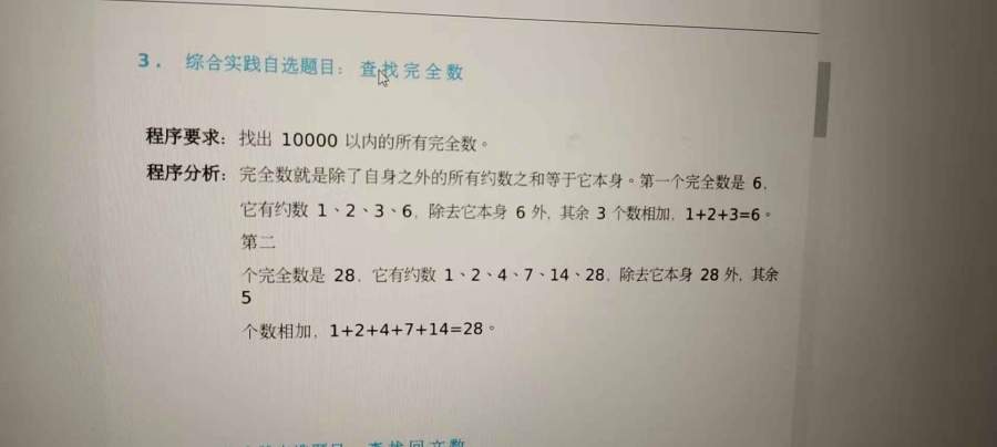 应该是先遍历1到n(n为当前测试的这个数据)找出其中能整除n的数,当这个循环完成后再判断这些数的和是否为n。你的代码中把判断放到了for循环内