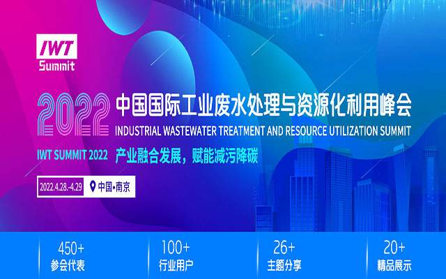 2022中国国际工业废水处理与资源化利用峰会将于2022年4月28-29日在南京召开!