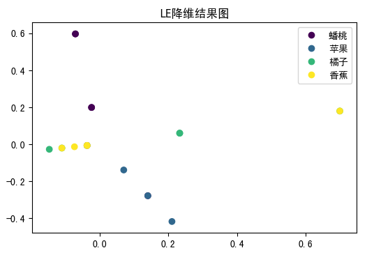 (4)拉普拉斯特征映射le(laplacian eigenmaps): 使相互间有关系的点在降维后的空间中尽可能的靠近,从而在降维后仍能保持原有的数据结构。