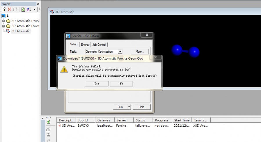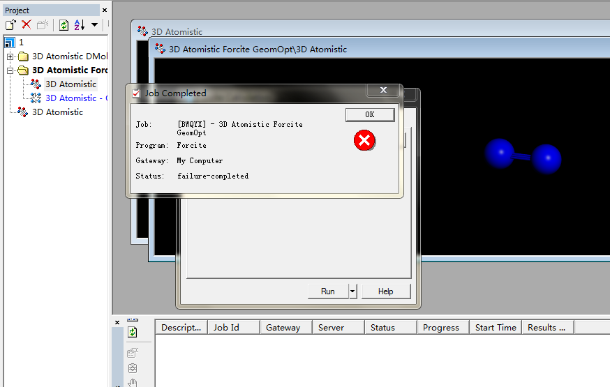 新人求救:materials studio 8.0 运行forcite 计算和model就报错,