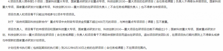 科技部项目限项规定