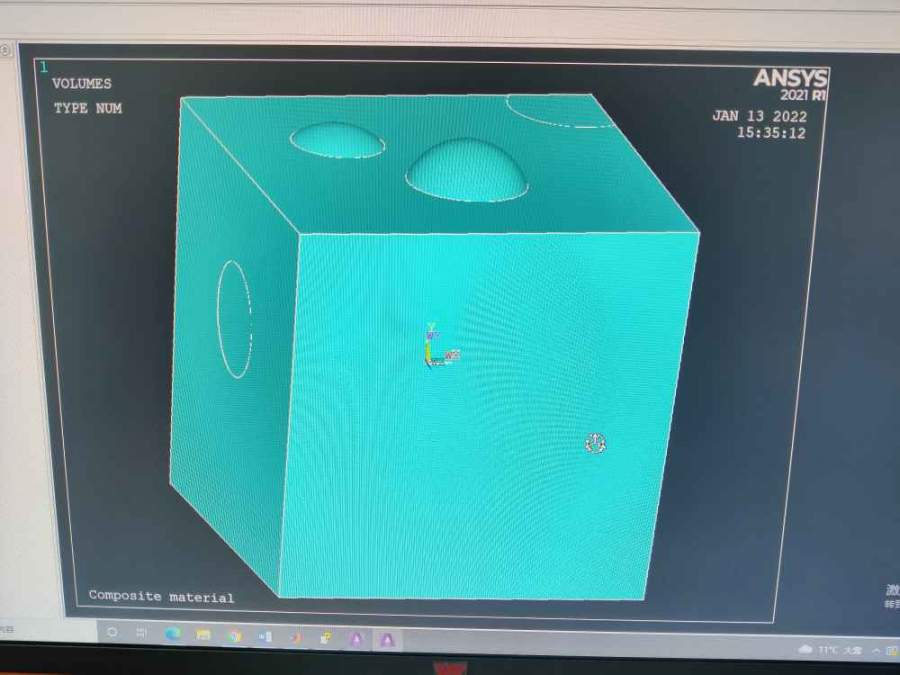 /clear !**************************************************************************** !文件说明段 !**************************************************************************** /FILNAME,CM,1 /TITLE, Composite material /REPLOT /units,si !**************************************************************************** !设置材料属性 !**************************************************************************** 这是命令流程序 /PREP7 ET,1,SOLID70 MP,KXX,1,0.5 MP,KXX,2,50 !**************************************************************************** !绘制分析模型 !**************************************************************************** XMAX=100 YMAX=100 ZMAX=100 !设定模型尺寸 RMIN=15 RMAX=20 !设定球形半径 NUM_TOTAL=10 !设定球个数 *DO,I,1,1000000 LOC_X=RAND(-XMAX/2+5,XMAX/2-5) LOC_Y=RAND(-YMAX/2+5,YMAX/2-5) LOC_Z=RAND(-ZMAX/2+5,ZMAX/2-5) RADIUS=RAND(RMIN,RMAX) !生成球体 WPOFFS,LOC_X,LOC_Y,LOC_Z SPH4,0,0, RADIUS *GET,VOLU_NUM,VOLU,0,COUNT M= VOLU_NUM !WPROTA,30, !CSWPLA,11,1 !CSYS,11 !VGEN, ,M, , ,, 30, , , ,1 CSYS,0 WPCSYS,-1,0 !通过布尔运算判断球是否相交 *IF,M,GT,1,THEN *DO,J,1,M-1 BOPTN,KEEP,1 BOPTN,NWARN,1 BOPTN,VERS,RV52 BTOL,1e-005, VSBV,J,M !能重合相减生成2个体 *GET,VOLU_NUM,VOLU,0,COUNT *IF,VOLU_NUM,GT,M,THEN !判断删除 VDELE,M,M+1,1,1 NUMCMP,VOLU *EXIT *ENDIF *ENDDO *ENDIF *GET,VOLU_NUM,VOLU,0,COUNT M= VOLU_NUM !判断数目如果达到一定数目停止循环 *IF,M,GE,NUM_TOTAL,THEN *EXIT *ENDIF *ENDDO BLOCK,-XMAX/2,XMAX/2,-YMAX/2,YMAX/2,-ZMAX/2,ZMAX/2 !!!!!!!!!!!!!!!!!!!!!截掉体外面一部分的填充物!!!!!!!!!!!!!!!! WPOFFS,-XMAX/2 WPROTA,,,90 BOPTN,KEEP,0 !不保留原体 BOPTN,NWARN,1 BOPTN,VERS,RV52 BTOL,1e-005, VSBW,ALL CSYS,0 WPCSYS,-1,0 WPOFFS,XMAX/2 WPROTA,,,90 BOPTN,KEEP,0 !不保留原体 BOPTN,NWARN,1 BOPTN,VERS,RV52 BTOL,1e-005, VSBW,ALL CSYS,0 WPCSYS,-1,0 !使工作平面位置与当前坐标系平面一致 WPOFFS,,YMAX/2 WPROTA,,90, BOPTN,KEEP,0 !不保留原体 BOPTN,NWARN,1 BOPTN,VERS,RV52 BTOL,1e-005, VSBW,ALL CSYS,0 WPCSYS,-1,0 WPOFFS,,-YMAX/2 WPROTA,,90, BOPTN,KEEP,0 !不保留原体 BOPTN,NWARN,1 BOPTN,VERS,RV52 BTOL,1e-005, VSBW,ALL CSYS,0 WPCSYS,-1,0 WPOFFS,,,ZMAX/2 BOPTN,KEEP,0 !不保留原体 BOPTN,NWARN,1 BOPTN,VERS,RV52 BTOL,1e-005, VSBW,ALL CSYS,0 WPCSYS,-1,0 WPOFFS,,,-ZMAX/2 BOPTN,KEEP,0 !不保留原体 BOPTN,NWARN,1 BOPTN,VERS,RV52 BTOL,1e-005, VSBW,ALL CSYS,0 WPCSYS,-1,0 !反选删掉四周的体 VSEL,U,LOC,X,-XMAX/2,XMAX/2 VDELE,ALL,,,1 ALLS VSEL,U,LOC,Y,-YMAX/2,YMAX/2 VDELE,ALL,,,1 ALLS VSEL,U,LOC,Z,-ZMAX/2,ZMAX/2 VDELE,ALL,,,1 ALLS VPLOT !NUMCMP,VOLU !NUMCMP,KP !NUMCMP,LINE !NUMCMP,AREA |