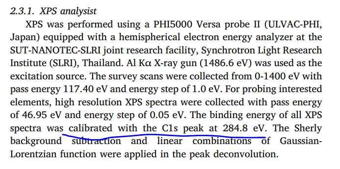 我想请教一下各位大佬,在我仅有的知识范围内,假如XPS进行荷电校正,比如在碳谱的284.8eV处校正,那么一般在C1s图中肯定有284.8处的峰,那么为什么我在好几篇文献中都看到了说在284.8处校正了,但是图中却没有284.8的峰呢?(指碳材料比如DLC)好多篇文章皆如此 @hwweven 发自小木虫Android客户端 |