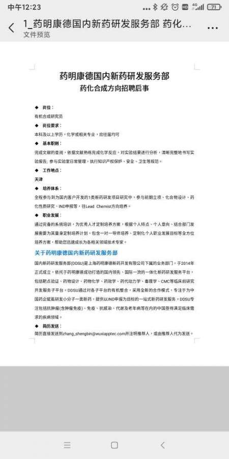 药明康德DDSU招聘 发自小木虫Android客户端 |