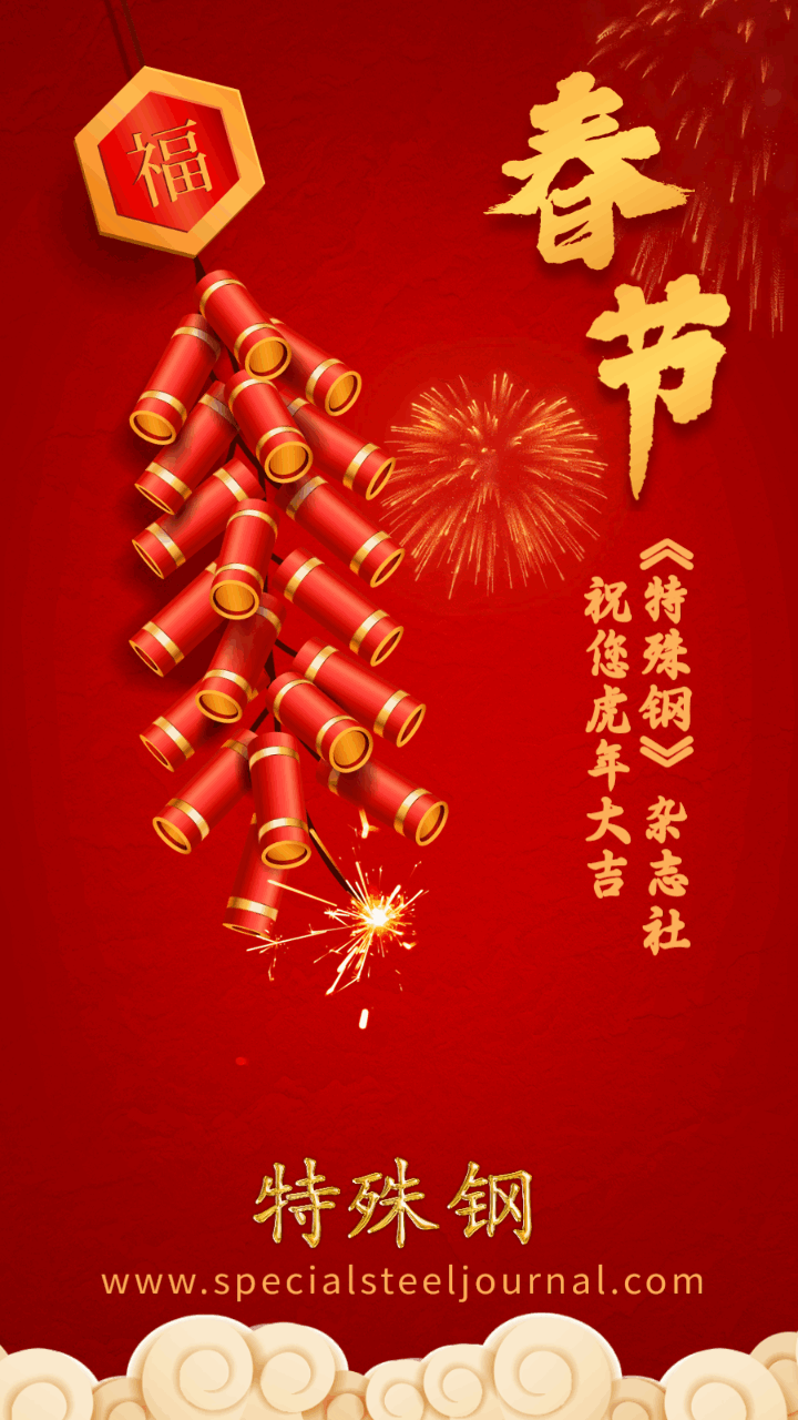 欢迎各位积极踊跃投稿,相信在各位的支持下,《特殊钢》杂志今后一定会越办越好,同时我们也会以专业的出版服务,前沿、严谨的特钢技术信息,以及开放的交流平台回报给大家。虎年来临之际,也预祝大家春节快乐,身体健康!
