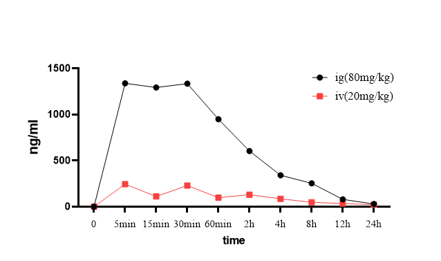 我近期做了一个药物的灌胃和静脉注射的药代动力学,黑色是灌胃,红色是静注。请药代高手给予解释一下,非常感谢![]() 1、为什么灌胃的峰是平头峰? 2、静脉注射给药的血药浓度明显偏低,请问可能是什么原因? 微信图片_20220210122617.png |