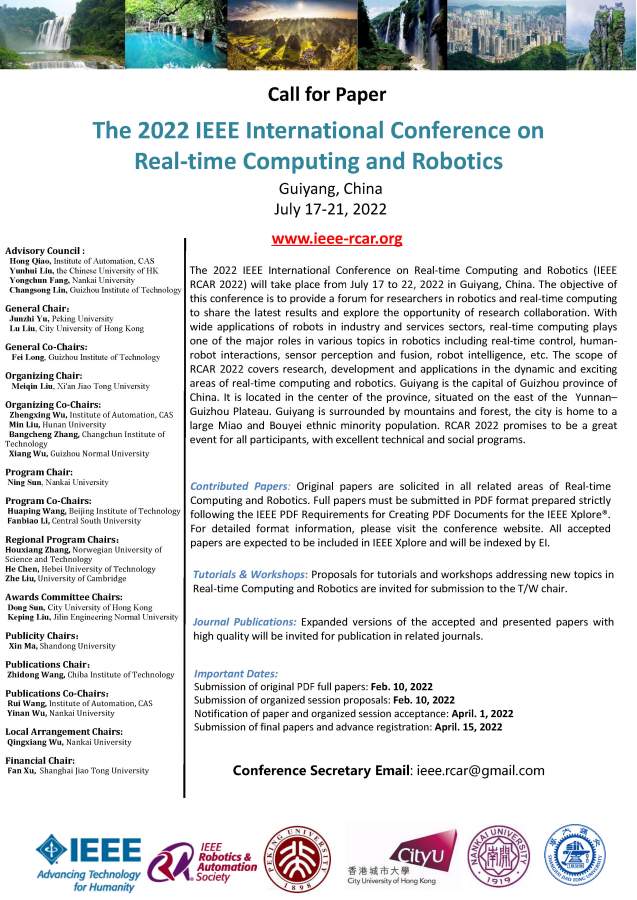 2022年IEEE实时计算与机器人国际会议(IEEE-RCAR 2022)征稿