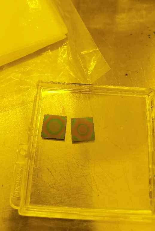 在对小尺寸硅片进行匀胶时(尺寸为10mm*10mm),出现了晕环,在更大尺寸或甚至更小(2*2mm)的硅片则没有看到此现象。