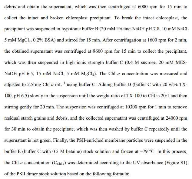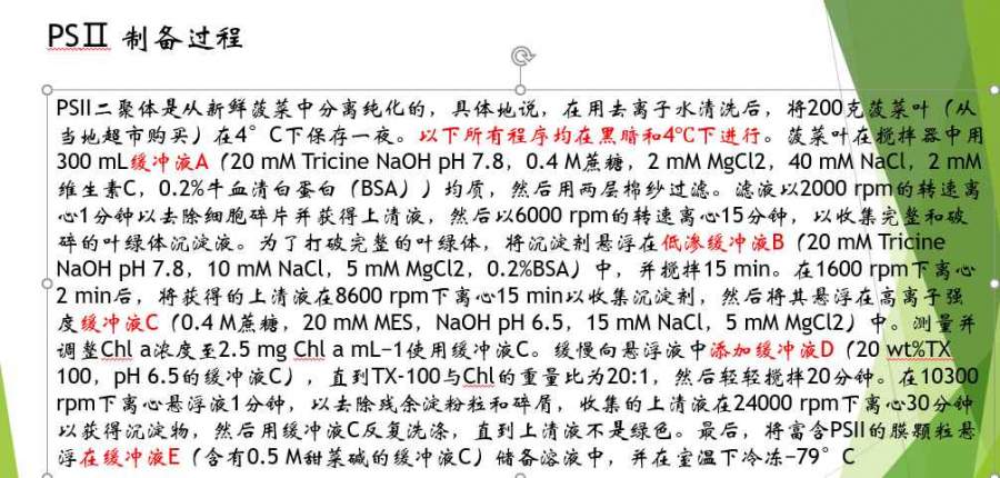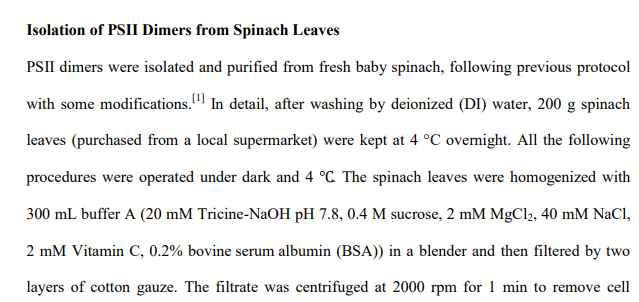 求助各路大神: 本人之前是从事电化学相关专业,因为毕业要求需要做一些生物相关的实验。想请教大家有没有做过从菠菜分离PSⅡ二聚体的实验 (Isolation of PSII dimer from spinach leaves)。从文献中看了很多制作方法,大致整理如下: 有以下问题请教各位大神: 1. 制备过程中需要的4°和黑暗环境一般需要什么方法可以实现? 2.制备过程中所提的缓冲液是可以买到的么? 3.怎么确定我得到的是PSⅡ二聚体? 4.有没有哪里可以直接买到PSⅡ二聚体? 发自小木虫Android客户端 |