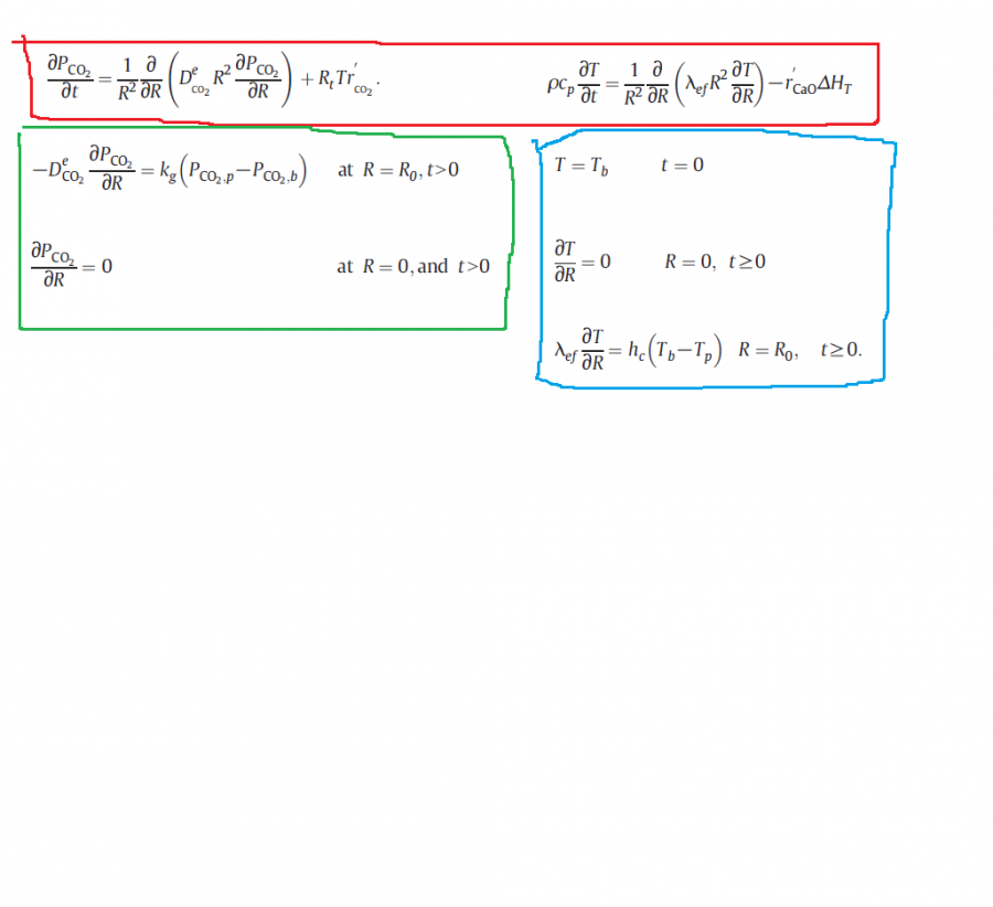 如附件中的图片所示,传热、传质方程相互耦合,两个方程的边界条件都是第二类加第三类, 文献中说对于耦合方程组可采用有限差分或有限体积法求解,但是我只会求解单个方程, 耦合方程组该如何求解? 求这方面大佬提供个思路或者提供个相关案例也可,万分感谢!! 实验平台:matlab 水蒸气环境下的碳酸钙分解.png |