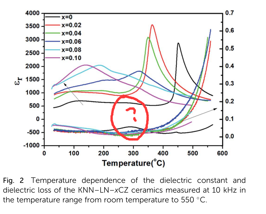 各位大佬,想请教一下,看到一篇文献,在KNN介电测试中,300度附近,介电损耗存在一波峰,想问下这个是什么原因造成的?能否提供下相关这方面论文研读下?谢谢 QQ图片20220319113448.png |