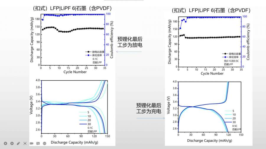 我们将LFP与石墨负极组装成液态全电池,室温0.1C下测试,得到上图的充放电曲线和放电比容量曲线,容量和库伦效率都不高,放电平台也有些异常,但是预锂化后的石墨负极能得到很大的改善,请问不进行预锂化的石墨则没有很好的循环性能吗? 发自小木虫Android客户端 |
