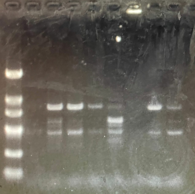 小弟将重组质粒pet28a转到Dh5α后挑抗性平板上的菌在带抗性摇瓶里摇了后,用pet28a的通用引物t7和t7t去做菌液pcr,跑出来的条带有很多非特异性条带是为什么,也没有目的基因或者空载质粒应该在的条带。![]() |