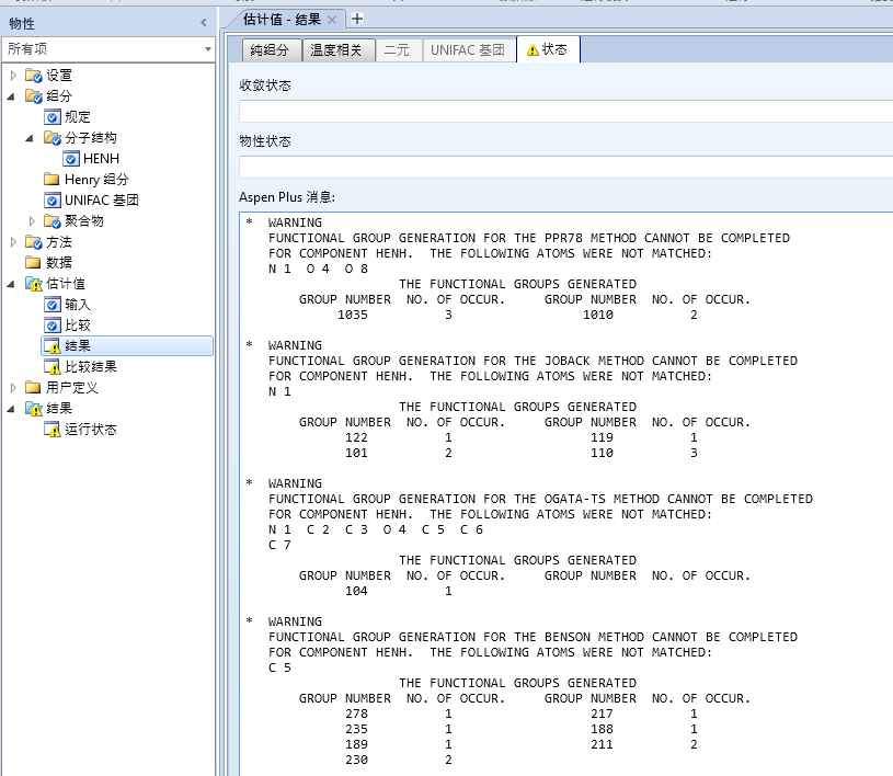 Aspen物性估算新组分时出现警告