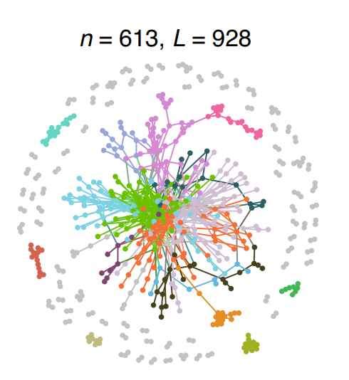 在袁梦婷老师文章中有这个网络图,求问是什么软件处理的,好像有的节点与节点之间是没有link的?四百多个节点感觉图中比较分散呢 发自小木虫Android客户端 |