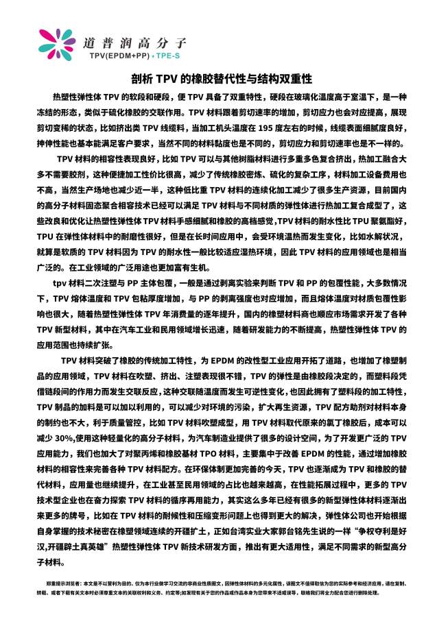 剖析TPV的橡胶替代性与结构双重性