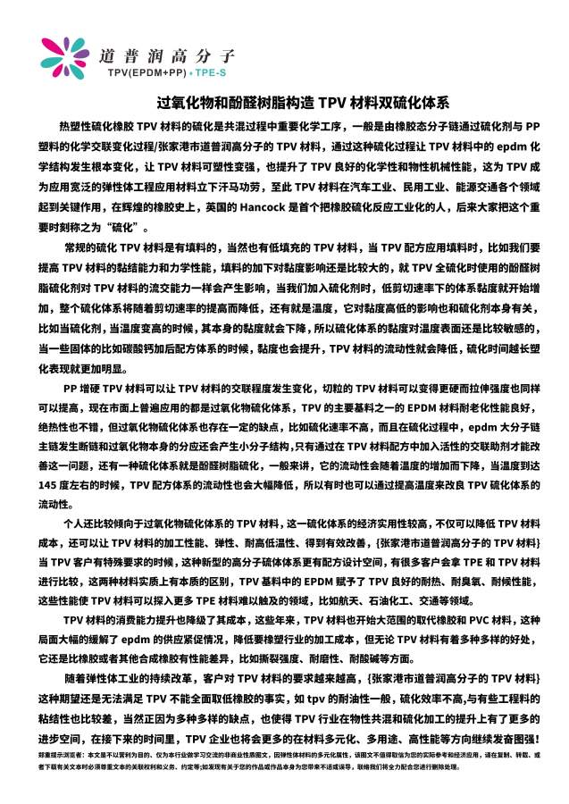 过氧化物和酚醛树脂构造TPV材料双硫化体系