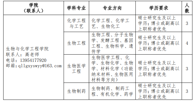 齐鲁理工学院生物与化学工程学院 2022年招聘简章