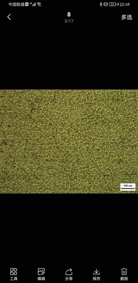 我用电弧熔炼的钼钛合金,之前切的1mm片状样品打磨抛光,腐蚀液用的氢氟酸硝酸甘油腐蚀液,腐蚀完能看出晶粒晶界,但后来从铸件上面切了圆柱试样,打磨抛光圆柱的圆面(圆面和之前磨的片状样品都是一个方向),同样的腐蚀液没腐蚀出来晶粒和晶界。图1,2是圆柱试样腐蚀出来的,图3是片状样品。 发自小木虫Android客户端 |