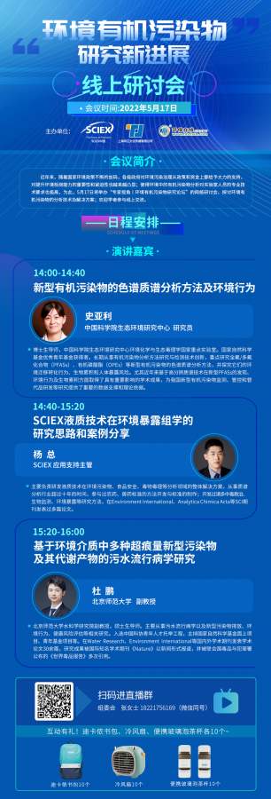 5月17日线上免费观看直播——“专家视角丨环境有机污染物研究论坛” 网络研讨会