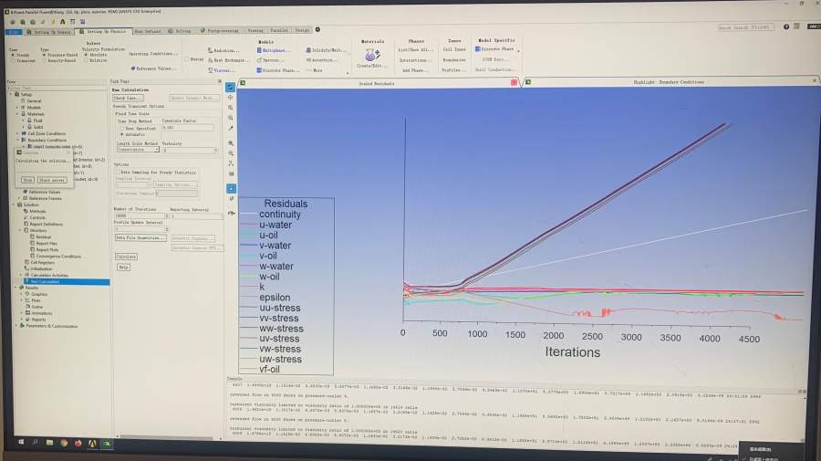 网格方法 进口multizone,其它sweep ,网格数60万 模拟条件:8m/s ,水相,油相800kg/m3 ,分率0.05,欧拉模型,雷诺应力模型,迭代10000次,8核并行计算,但算着残差图就偏的很严重,如图,但计算机没停止计算,求助帮忙分析哪里输参数输错了 11.jpg |