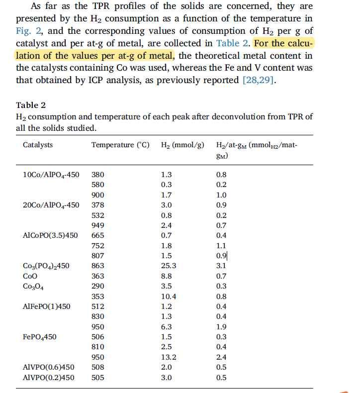 催化剂氢tpr表征中,氢消耗量的表达方式