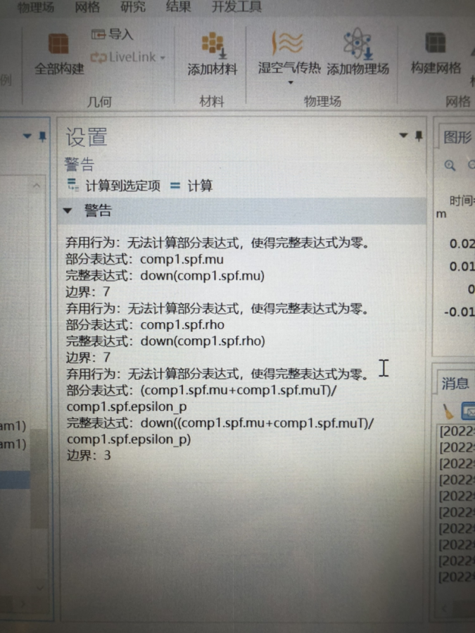 请问各位大佬comsol6.0计算出现这种提示是什么原因?计算管内层流,可以得到结果,但是中间会提示警告。