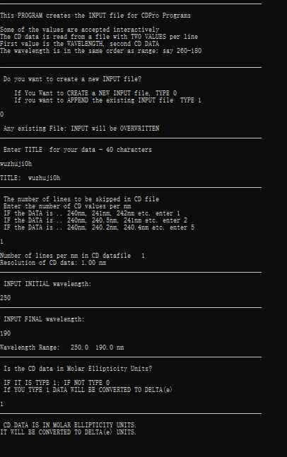 在用CDPro软件计算二级结构的过程中进行到最后一步出现问题,软件会自动关闭。 已经把TXT文本转化为INP,并且放在c盘目录下,请问有老师遇到过这种问题吗,求解答 发自小木虫Android客户端 |