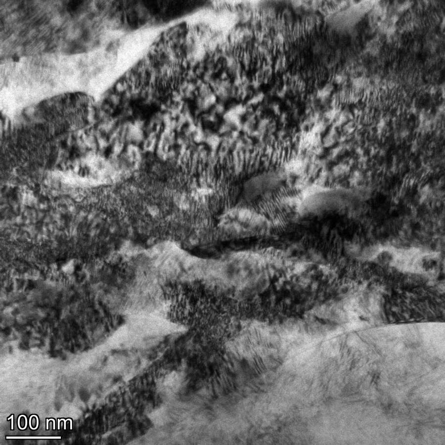 楼主的材料是2024铝合金。卖家给的成分是Al-3.95Cu-1.33Mg-0.48Mn,在495℃固溶30分钟后,轧制50%后进行了130℃/28小时的人工时效。拍TEM时选的(100)。反正只能看到一些T相,看不到S相。是不是拍的时候没选对方向? Camera Ceta 20220525 1609 8600 x Ceta.jpg |