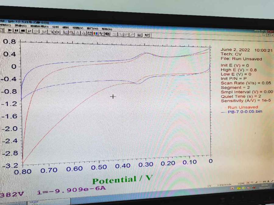 请问一下,本人用电化学工作站做cv曲线的时候,同一种材料同一种缓冲,条件完全一样,隔天做的时候为什么会出现峰电位增大的时候峰电流增大的情况呢?下面有图(红线),谢谢! @langzhizhou @Gamry-电化学 发自小木虫Android客户端 |