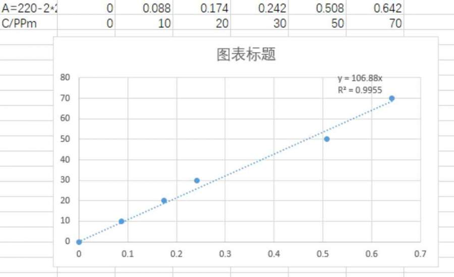 用过硫酸钾消解法测总氮,如图是标线,可以有2个9,但是,测样品,吸光度就很大有。样品里面没有氮元素,测出来的吸光度有0.6几,换算成浓度就有60ppm,这不和常理,我这个样品里面只有乙酸钠、硫酸镁、磷酸盐,都是不会产生干扰的离子。请问大家,样品需要怎么处理?我这个样品吸光度这么高是因为什么? 发自小木虫Android客户端 |